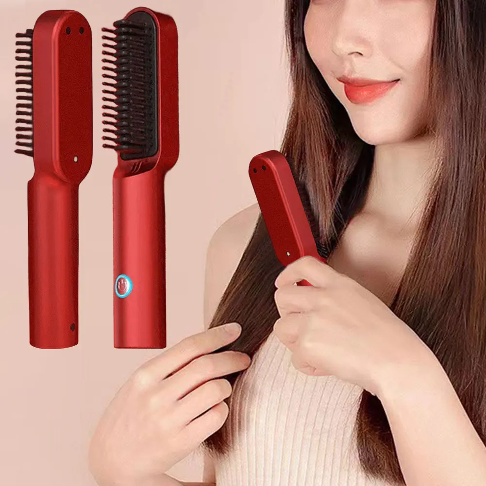 Achieve salon-quality styling anytime, anywhere with this portable 2-in-1 hair straightener and curler brush. Designed for convenience and care, it features a lightweight body, USB rechargeability, and advanced hair-protecting technology. Perfect for all hair types and travel-ready.